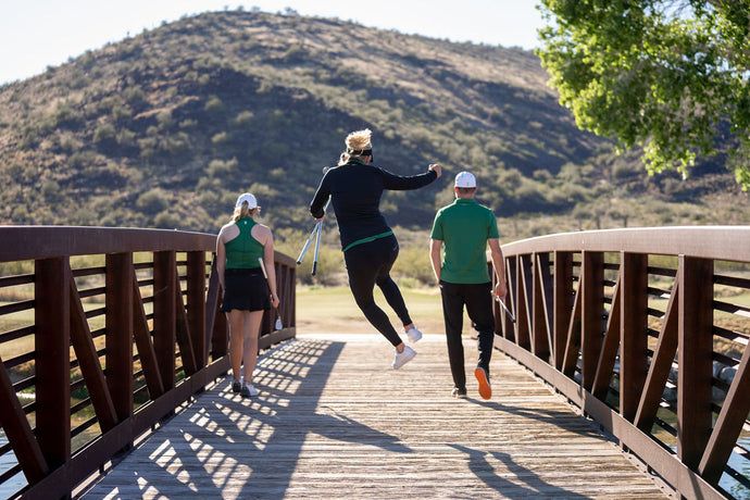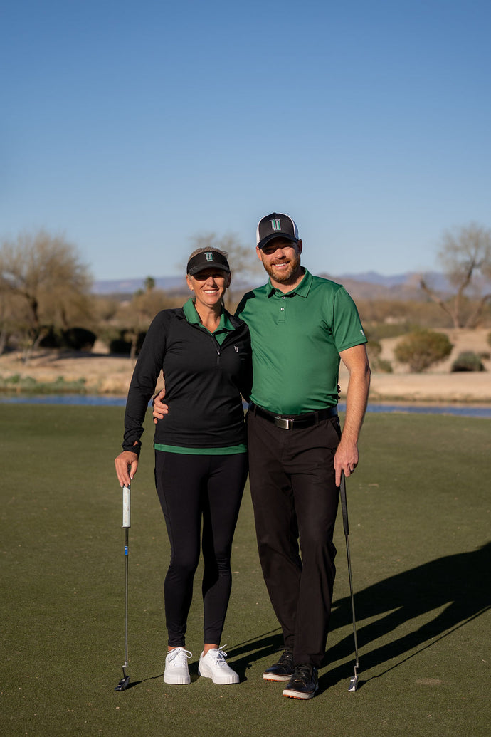 Our styles are obviously influenced from where we live, but also from where we're from. We're originally from northern Minnesota, where the golf season is only a few months long. Now that we live in Arizona, we play golf year round. Our styles are designed to be worn anywhere from a hot, summer day in Arizona to a chilly, fall day in Minnesota.